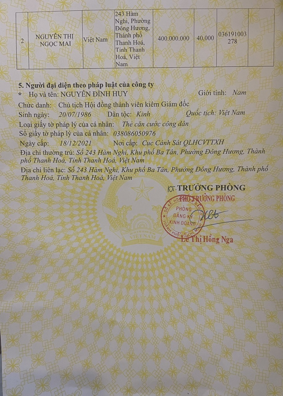 - Người ĐDPL: Nguyễn Đình Huy